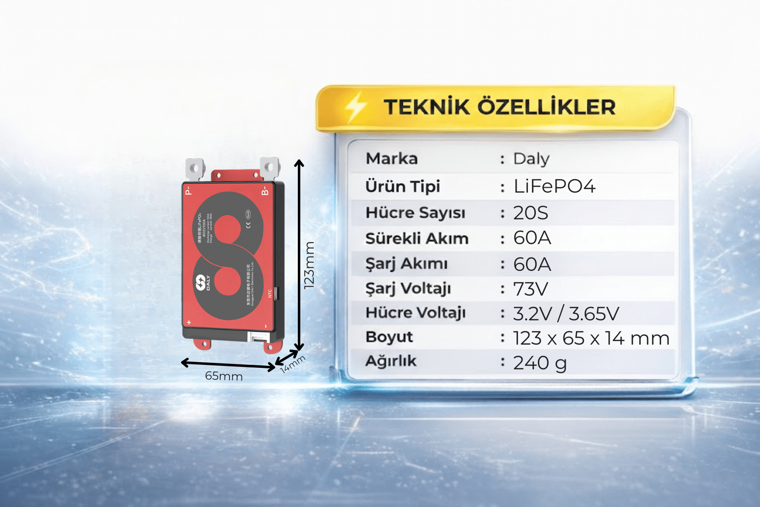 Daly markalı BMS modelleri, batarya sisteminizin ömrünü uzatır ve sizi yüksek maliyetli batarya sorunlarından korur. Lityum pil sistemlerinizde hem profesyonel hem de bireysel çözümler için güvenle Daly ürünlerini tercih edebilirsiniz.