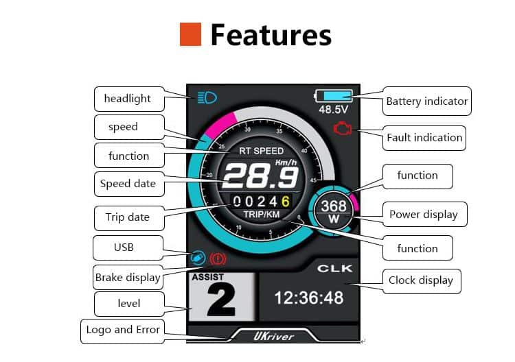 UKC1 Elektrikli Bisiklet Renkli Ekran Çok Fonksiyonlu TFT